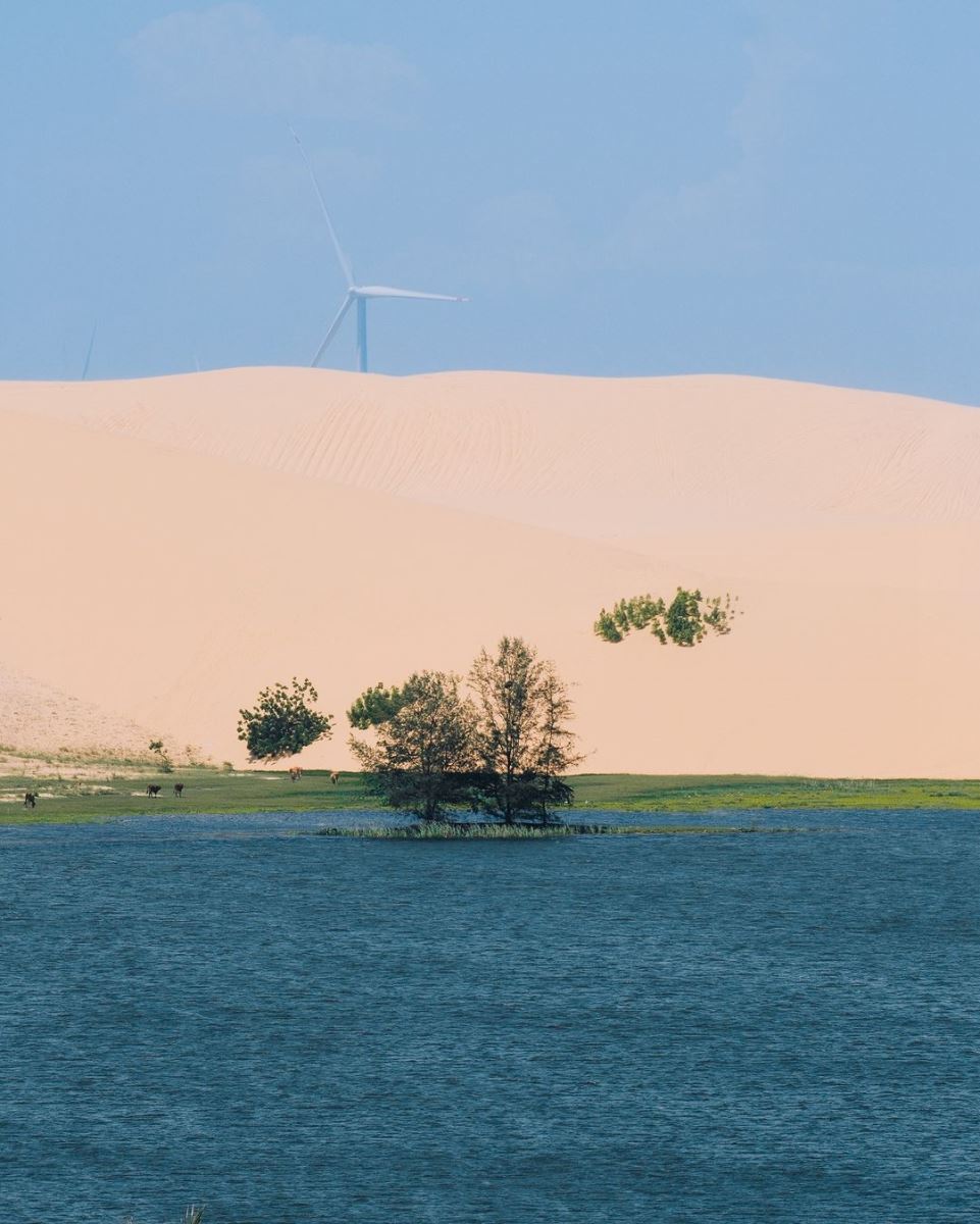 Bàu Trắng là một hồ nước ngọt tự nhiên nằm giữa những đồi cát trắng rộng lớn, được ví như một phiên bản thu nhỏ của Sahara tại Việt Nam với cảnh quan vô cùng ấn tượng.