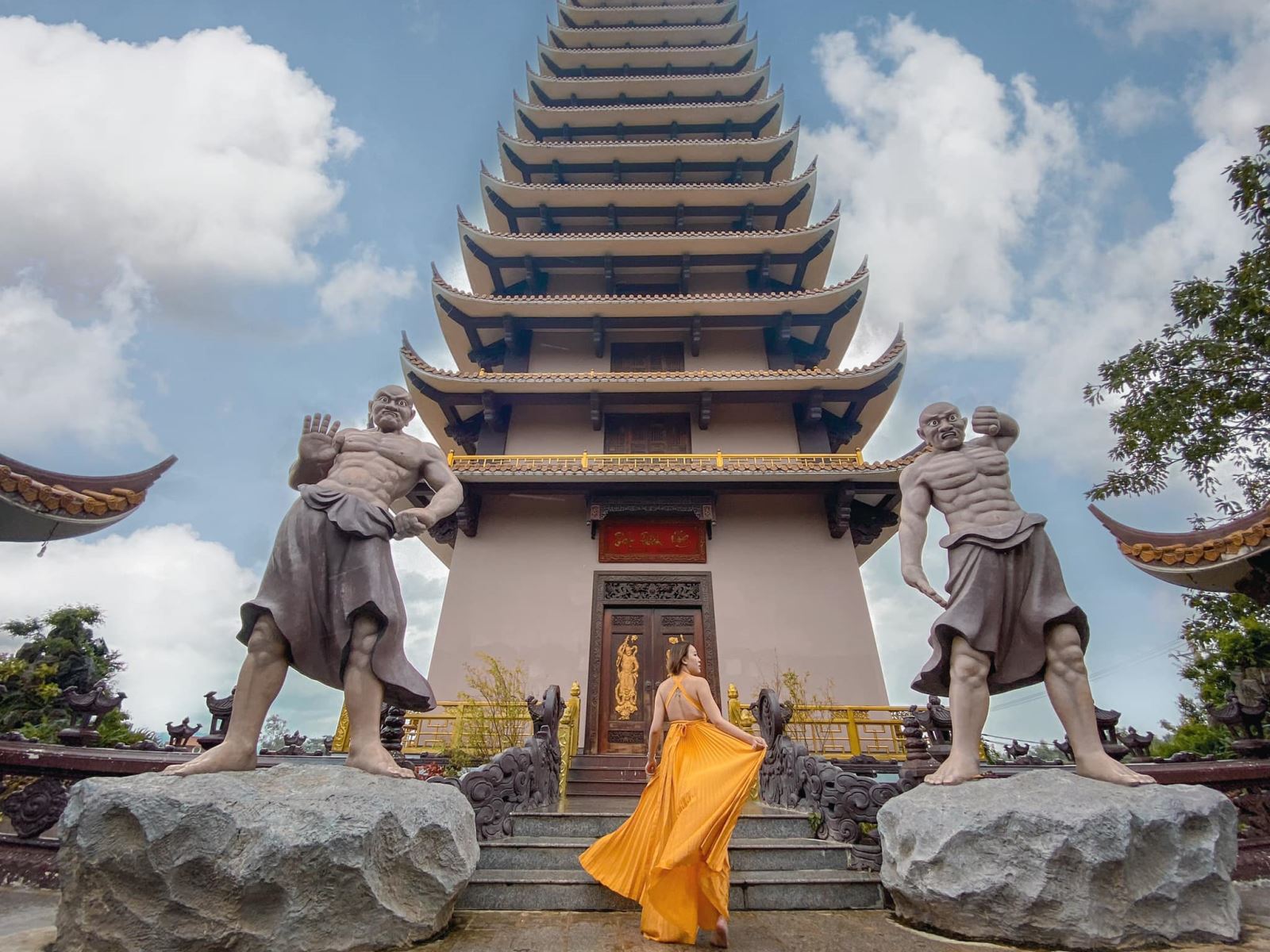 Nhìn từ xa có thể thấy cấu trúc bên trong chùa Thiên Hưng có rất nhiều công trình đặc sắc tạo nên quy mô hoành tráng cho ngôi chùa trẻ tuổi này. Và những công trình đặc sắc này có thể làm bạn có cảm giác như lạc giữa cung đình thời xưa đấy.