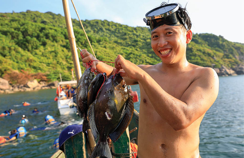 Bạn có thể tham quan và xem các rạng san hô tại đảo với làng nước trong vắt và thưởng thước các món hải sản tươi ngon được ngư dân đánh bắt và bán trực tiếp