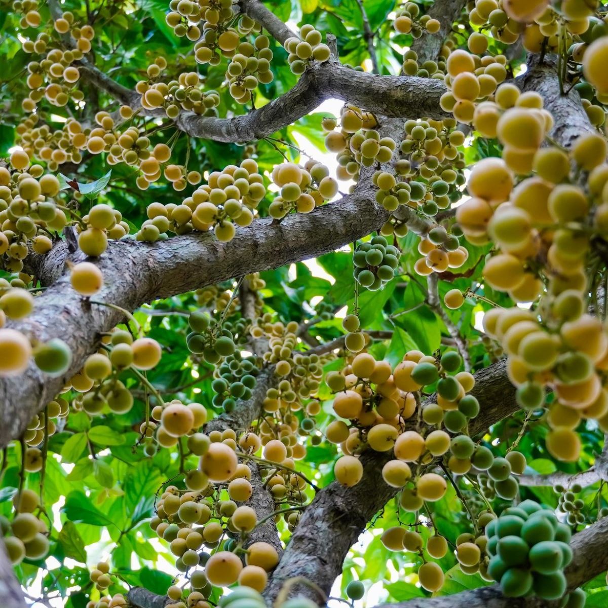 Ở Núi Cấm, dâu da không chỉ mọc hoang mà còn được người dân trồng xen trong vườn, quanh chùa chiền, đường mòn, hay ngay trong sân nhà. Mỗi mùa trái chín, cả sườn núi như khoác lên mình chiếc áo mới – không phải sắc hoa, mà là sắc quả vàng óng ánh chen giữa màu xanh bạt ngàn của lá rừng. Những chùm quả rủ xuống sát mặt đất, đung đưa trong gió tạo thành một khung cảnh vừa gần gũi, vừa đầy hấp dẫn.