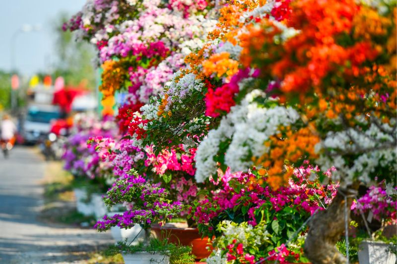 Khoảng thời gian từ giữa tháng Chạp đến giáp Tết Âm lịch là thời điểm lý tưởng nhất để đến Phú Sơn. Đây là lúc hoa giấy vào độ rực rỡ nhất, làng nghề cũng bước vào giai đoạn tất bật, sôi động nhất trong năm. Đến vào dịp này, du khách không chỉ được ngắm hoa mà còn được hòa mình vào không khí Tết miền Tây – mộc mạc, đậm chất tình người.