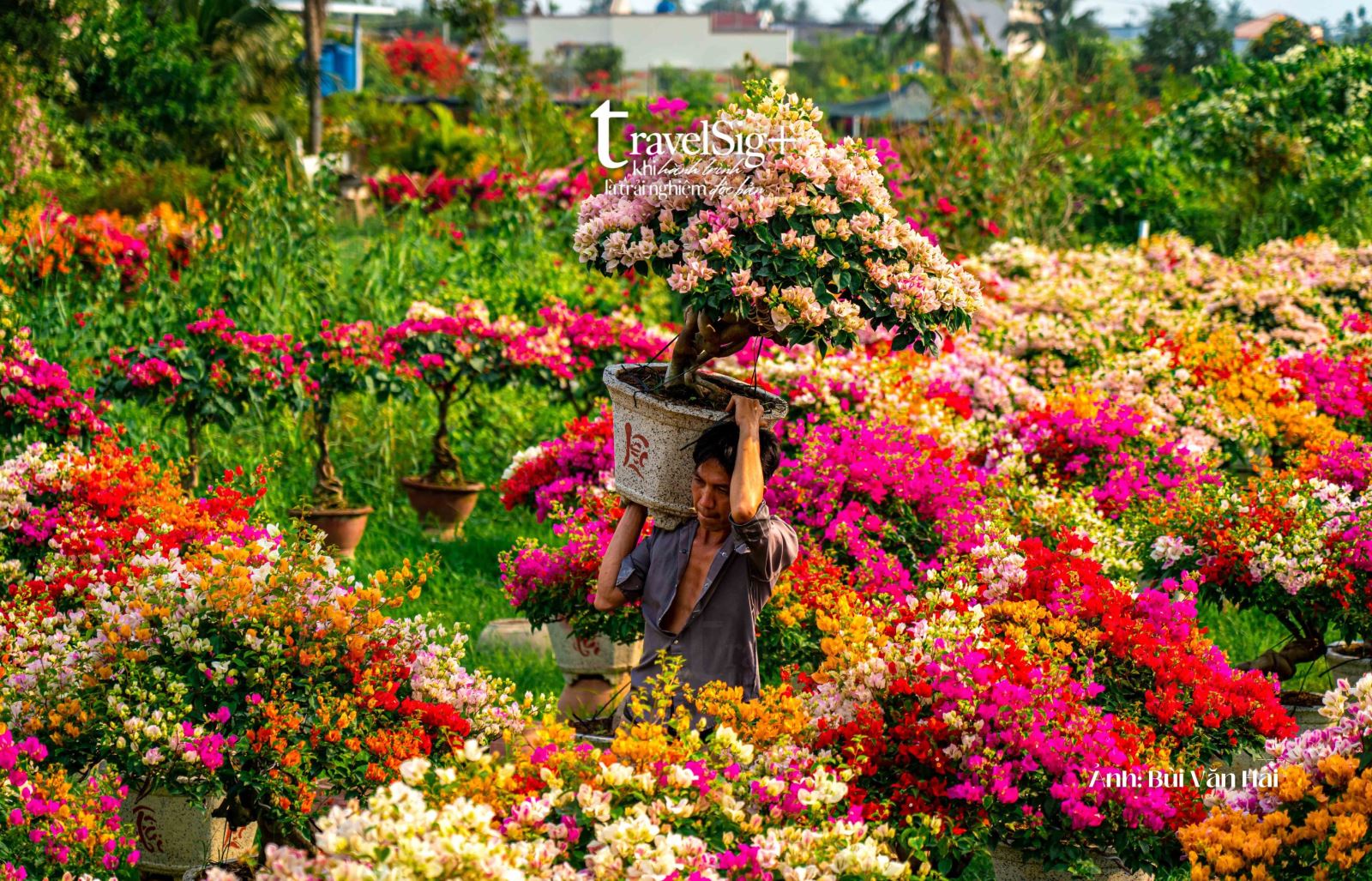 Du khách đến đây không chỉ để chiêm ngưỡng hoa, mà còn có cơ hội tìm hiểu quy trình chăm sóc, nhân giống và tạo dáng hoa giấy. Mỗi công đoạn đều đòi hỏi sự tỉ mỉ, kiên nhẫn và kinh nghiệm lâu năm. Bởi thế, mỗi chậu hoa giấy không chỉ là sản phẩm làm đẹp không gian, mà còn là kết tinh của lao động và tâm huyết.